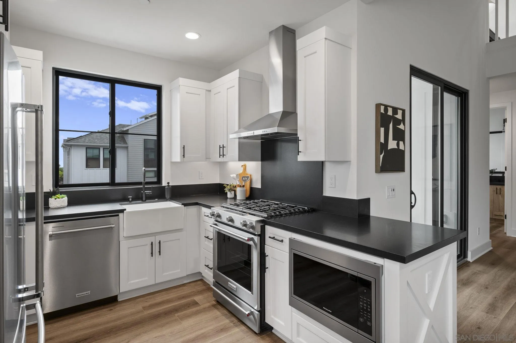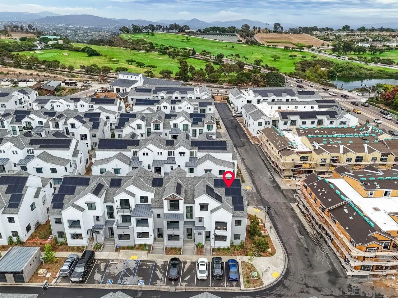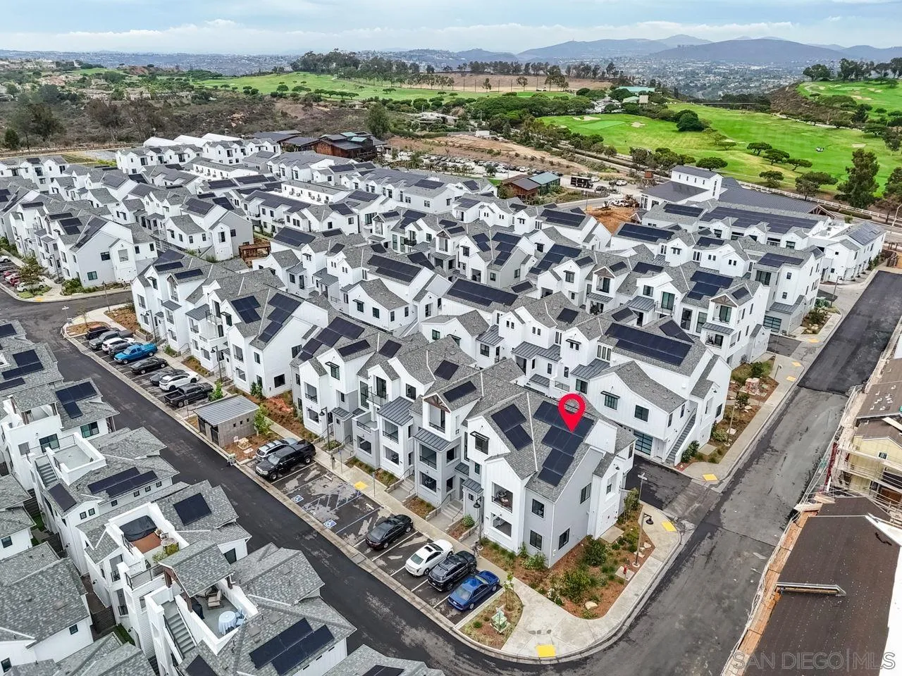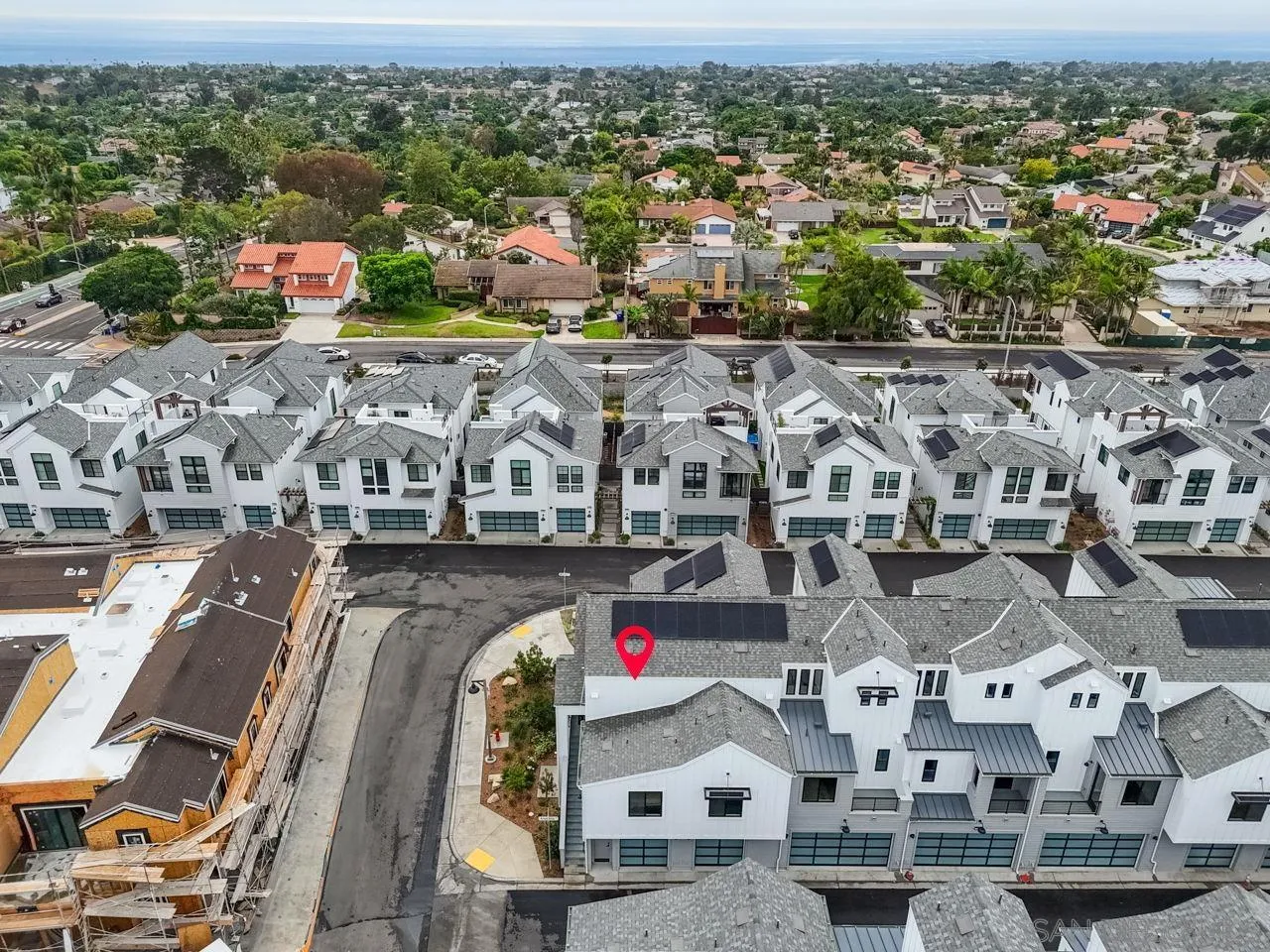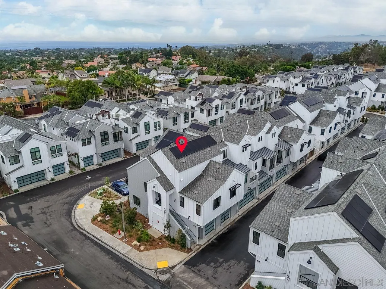 Welcome to Fox Point Farms -- Encinitas' Newest and Most Sought-After Sold-Out Community. Now is your chance to own a stunning corner-unit townhome in this highly desirable neighborhood. This 1,021 sq. ft. residence features $65k in premium upgrades and premium lot location, including owned solar, offering both style and sustainability. Inside, you'll find a bright and spacious layout with 1 bedroom plus a versatile loft that can serve as a second bedroom or office--complete with ocean views. The primary ensuite includes dual sinks, and there's a convenient half bath for guests. The kitchen is equipped with high-end KitchenAid appliances and a 5-burner gas stove--perfect for cooking and entertaining. Relax with ocean breezes on your private balcony, just off the expansive living area. Additional features include an oversized one-car garage with overhead storage and off-street guest parking.