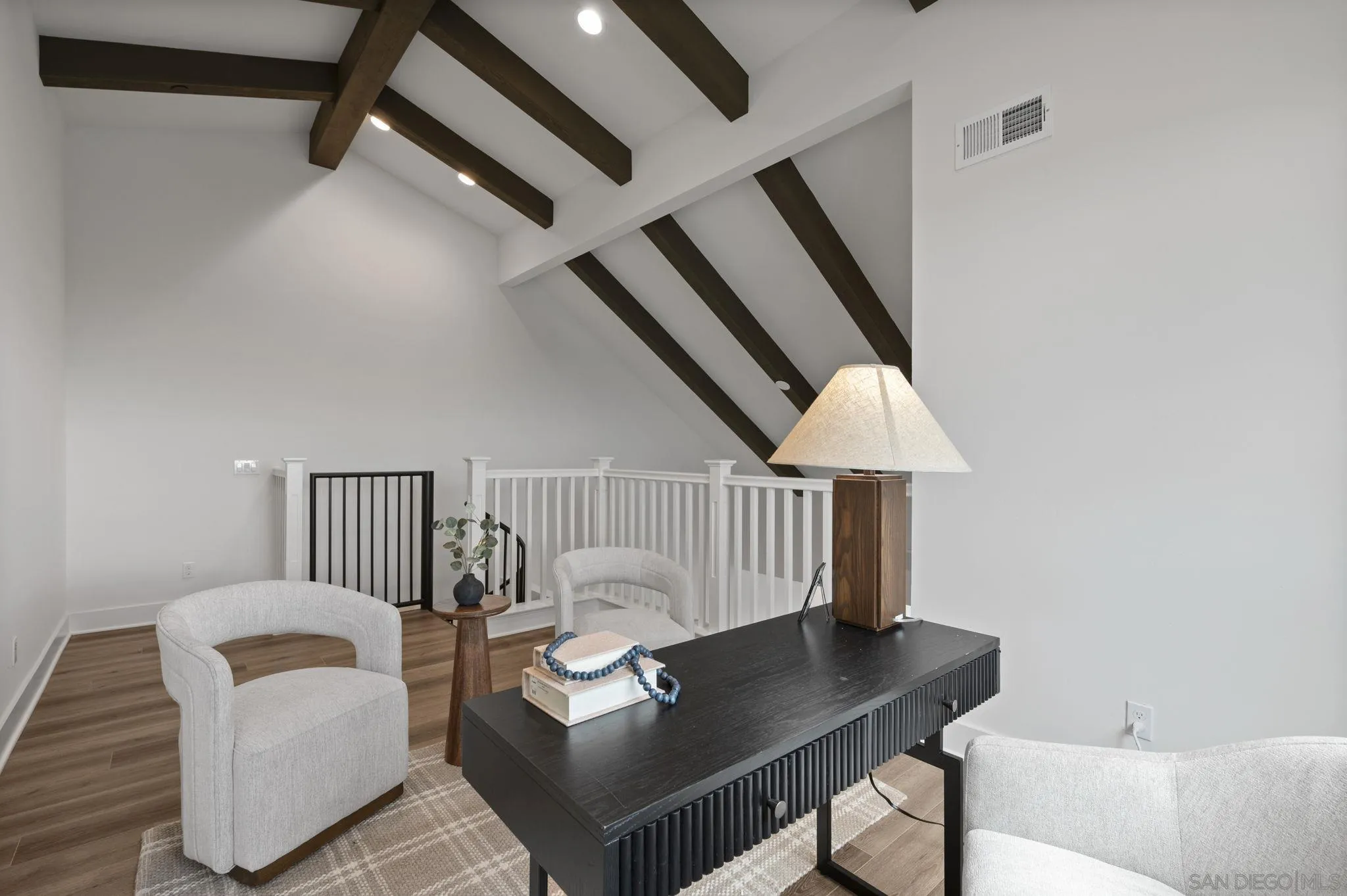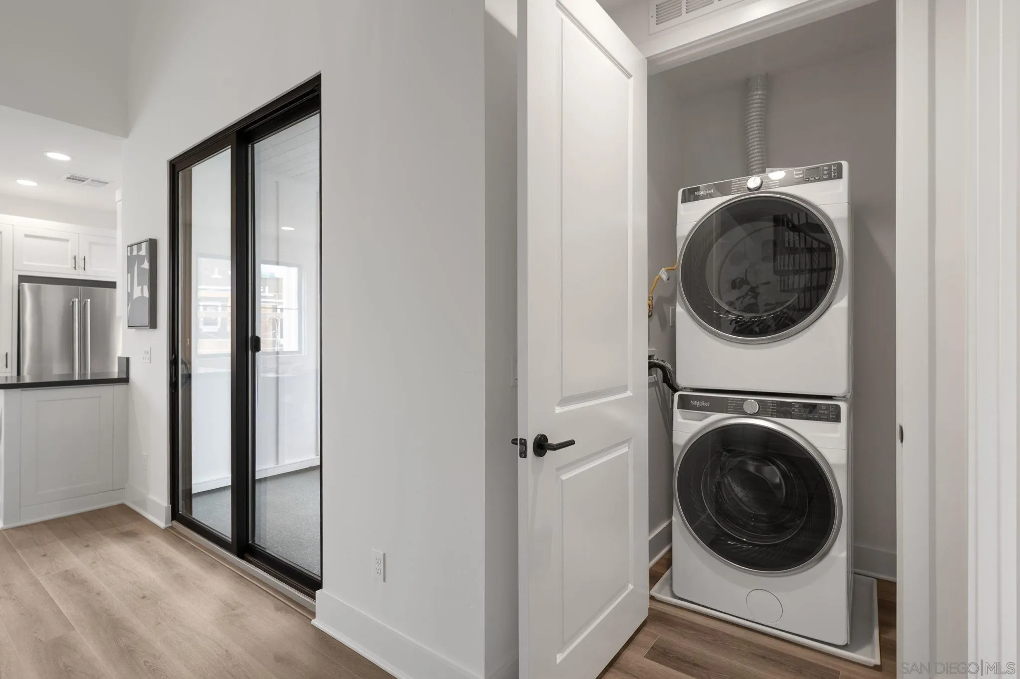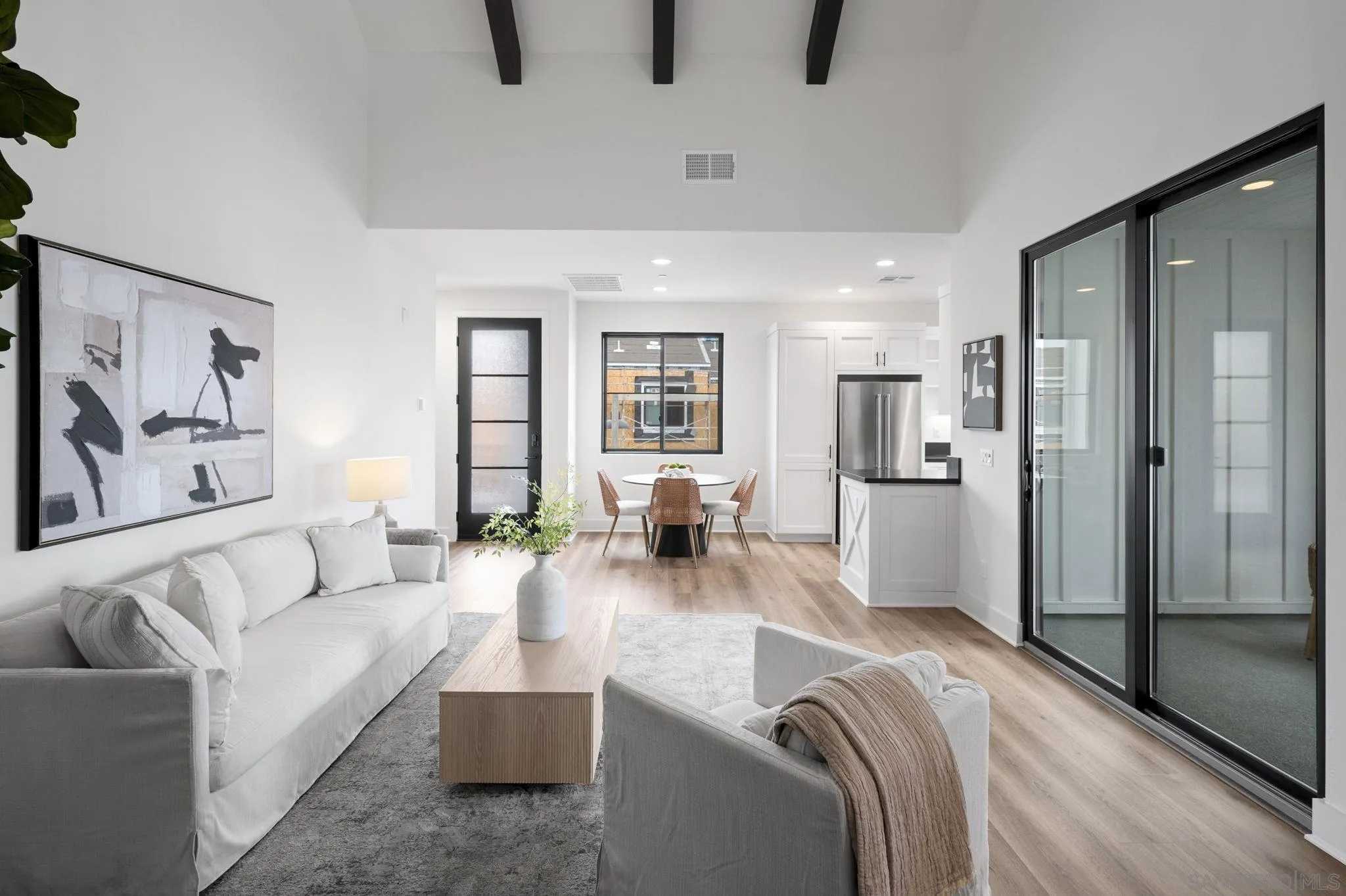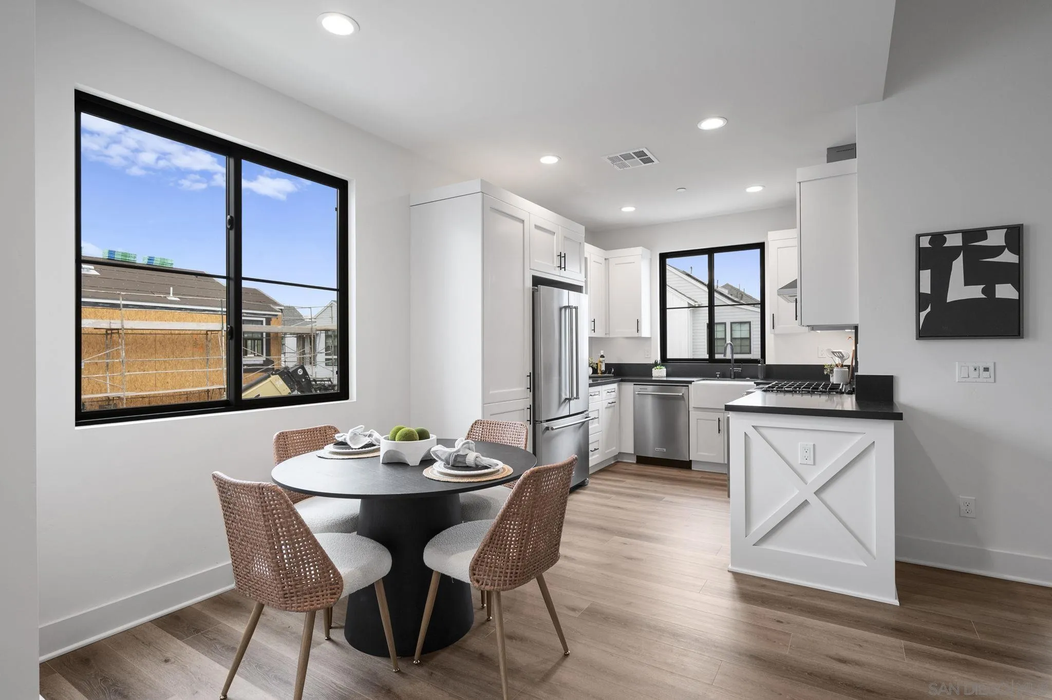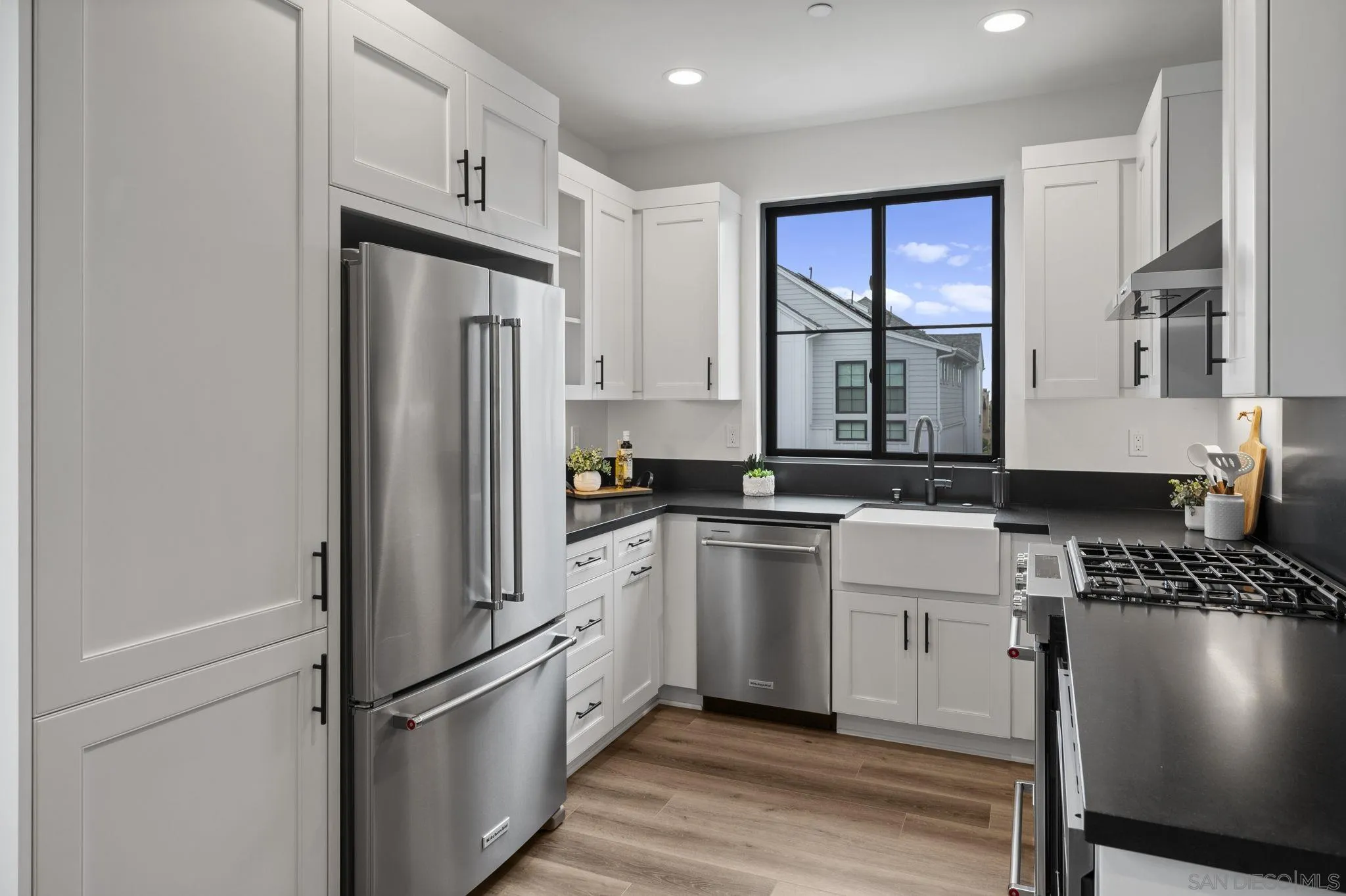 Welcome to Fox Point Farms -- Encinitas' Newest and Most Sought-After Sold-Out Community. Now is your chance to own a stunning corner-unit townhome in this highly desirable neighborhood. This 1,021 sq. ft. residence features $65k in premium upgrades and premium lot location, including owned solar, offering both style and sustainability. Inside, you'll find a bright and spacious layout with 1 bedroom plus a versatile loft that can serve as a second bedroom or office--complete with ocean views. The primary ensuite includes dual sinks, and there's a convenient half bath for guests. The kitchen is equipped with high-end KitchenAid appliances and a 5-burner gas stove--perfect for cooking and entertaining. Relax with ocean breezes on your private balcony, just off the expansive living area. Additional features include an oversized one-car garage with overhead storage and off-street guest parking.