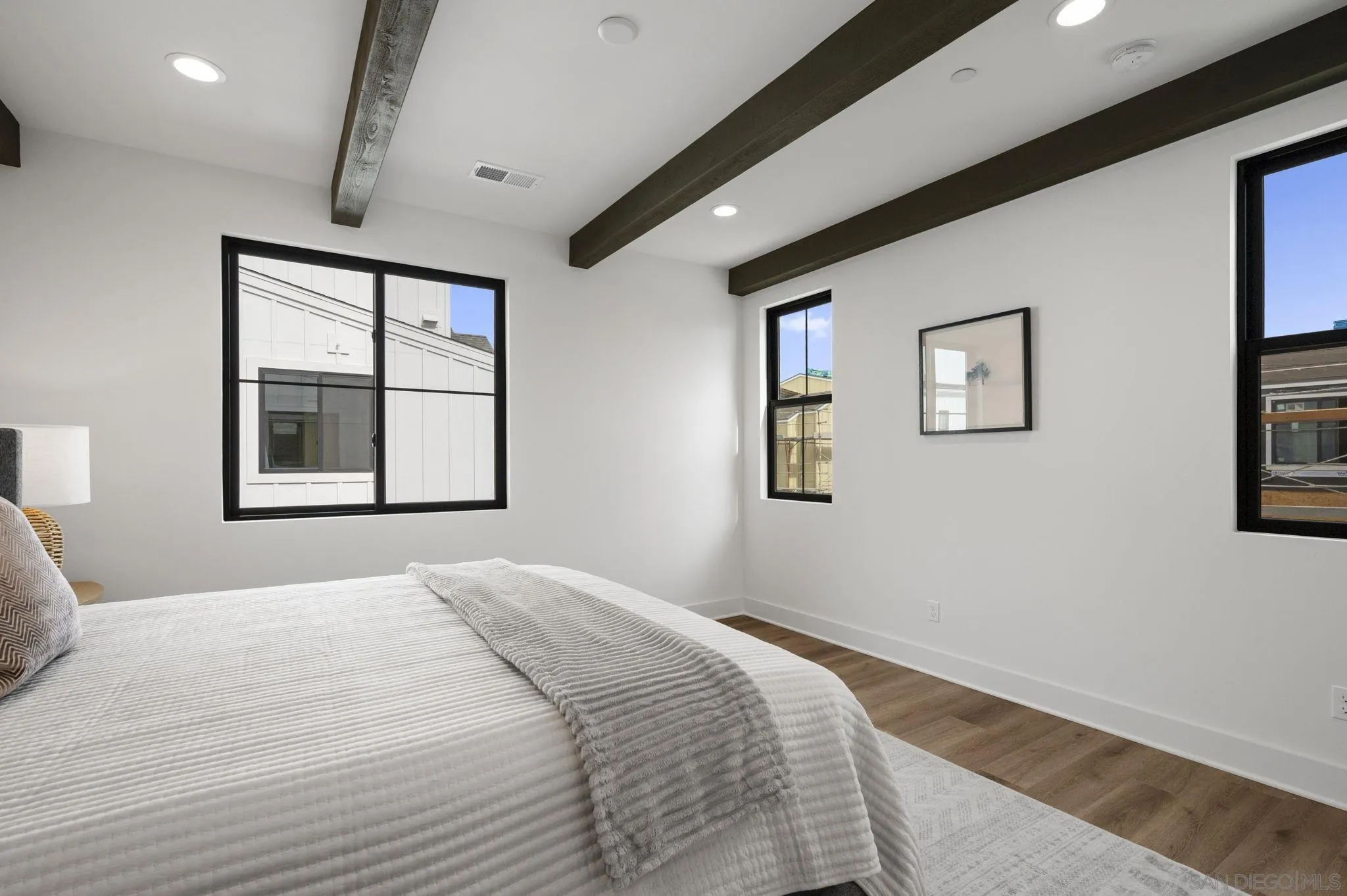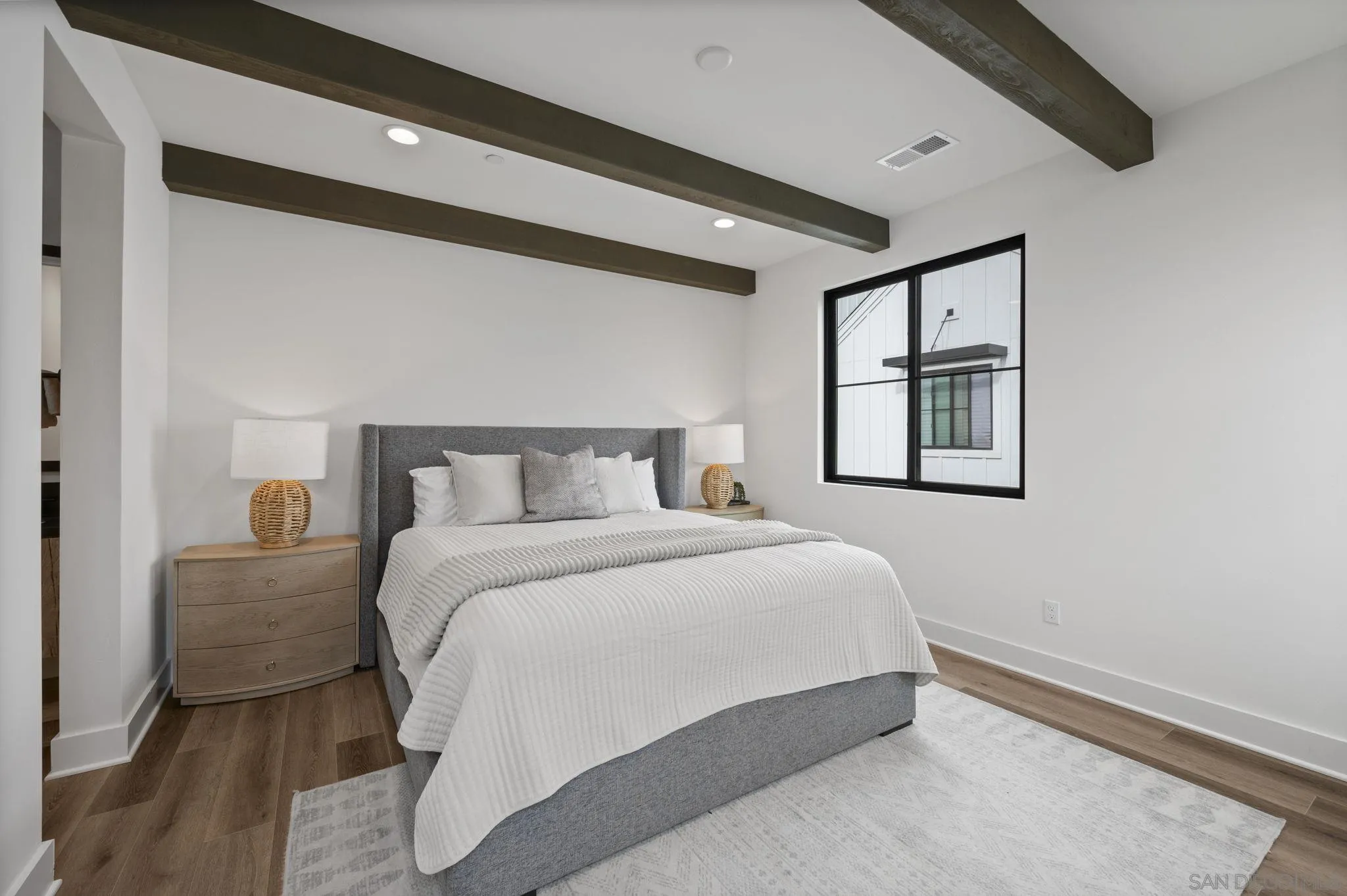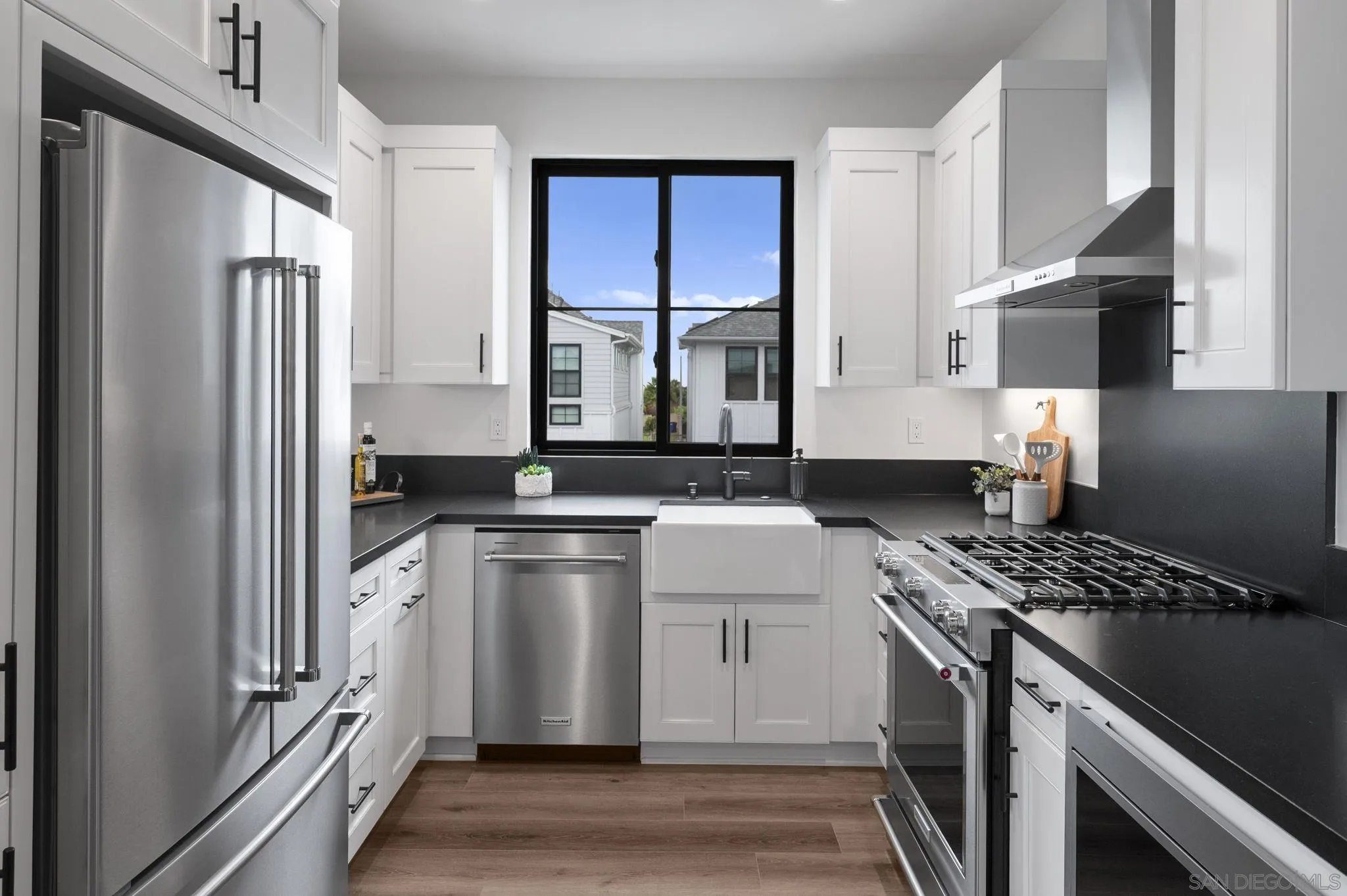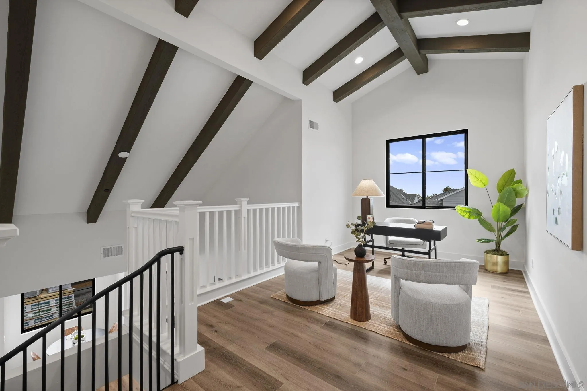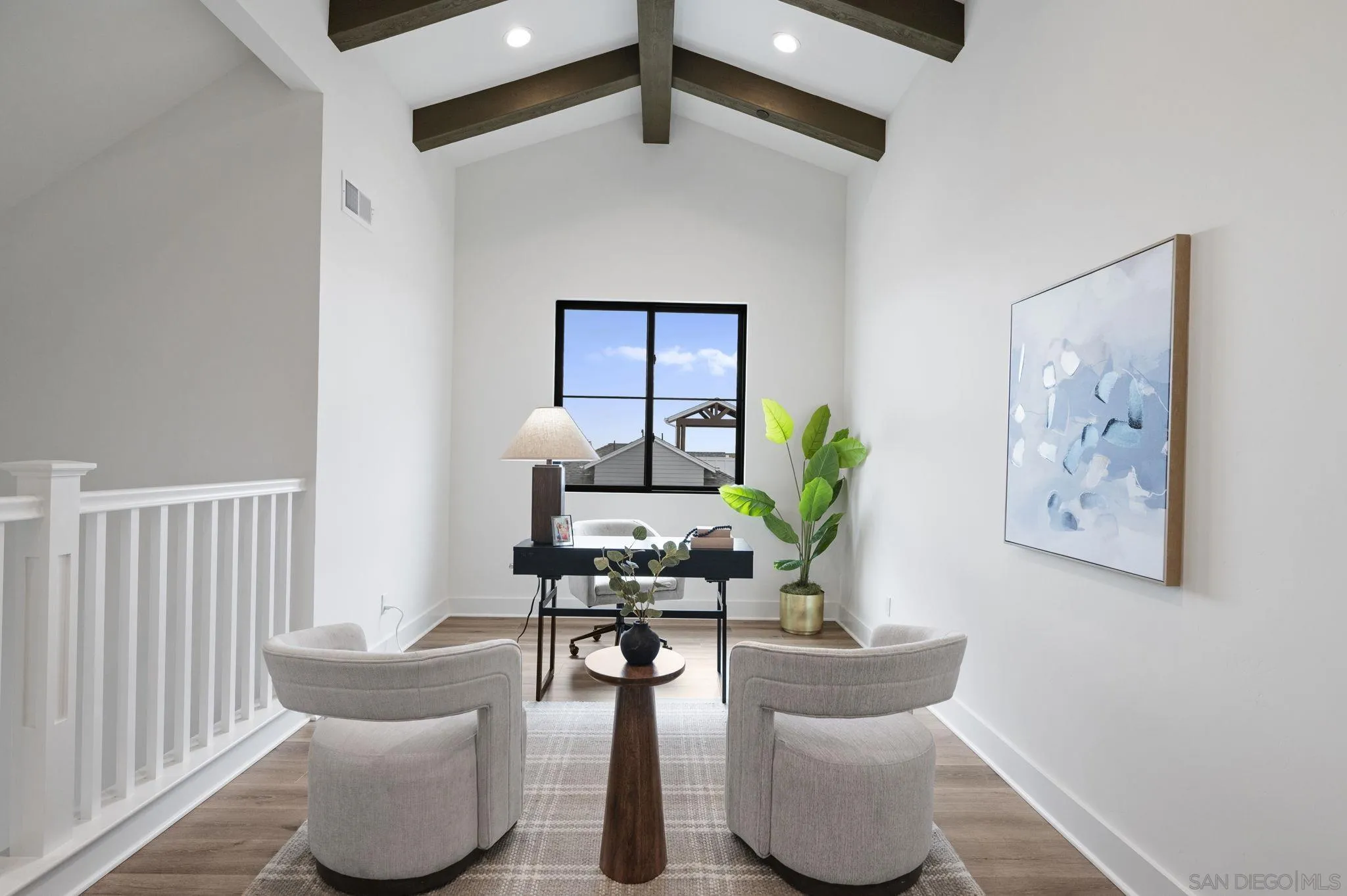 Welcome to Fox Point Farms -- Encinitas' Newest and Most Sought-After Sold-Out Community. Now is your chance to own a stunning corner-unit townhome in this highly desirable neighborhood. This 1,021 sq. ft. residence features $65k in premium upgrades and premium lot location, including owned solar, offering both style and sustainability. Inside, you'll find a bright and spacious layout with 1 bedroom plus a versatile loft that can serve as a second bedroom or office--complete with ocean views. The primary ensuite includes dual sinks, and there's a convenient half bath for guests. The kitchen is equipped with high-end KitchenAid appliances and a 5-burner gas stove--perfect for cooking and entertaining. Relax with ocean breezes on your private balcony, just off the expansive living area. Additional features include an oversized one-car garage with overhead storage and off-street guest parking.