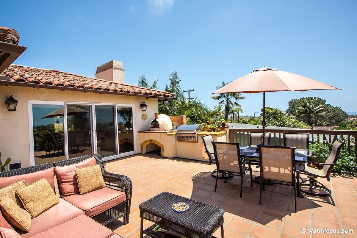 Security system, built-in vacuum, speakers in living room for potential media center, new rain gutters, plus rear yard is totally fenced and gated with new fencing! Upstairs, romantic and spacious master bedroom suite has fireplace, panoramic view deck, sitting area or office nook, and totally renovated master bathroom with custom stone counters, large custom stone walk in shower with two shower heads plus custom built cabinetry! According to previous contractor/owner, home was taken down to a required portion of the original foundation in 1994 and was rebuilt at that time. Buyer to contact city of Encinitas for plans and permit verification. Present owners remodeled master bathroom, added patio and enlarged ocean view deck! Must see to appreciate the spaciousness of the floorplan and the size and usability of the yard-not to mention the great walk to beach and parks location, in one of Encinitas' most sought after locations! Buyer to verify potential for guest house with the City of Encinitas.