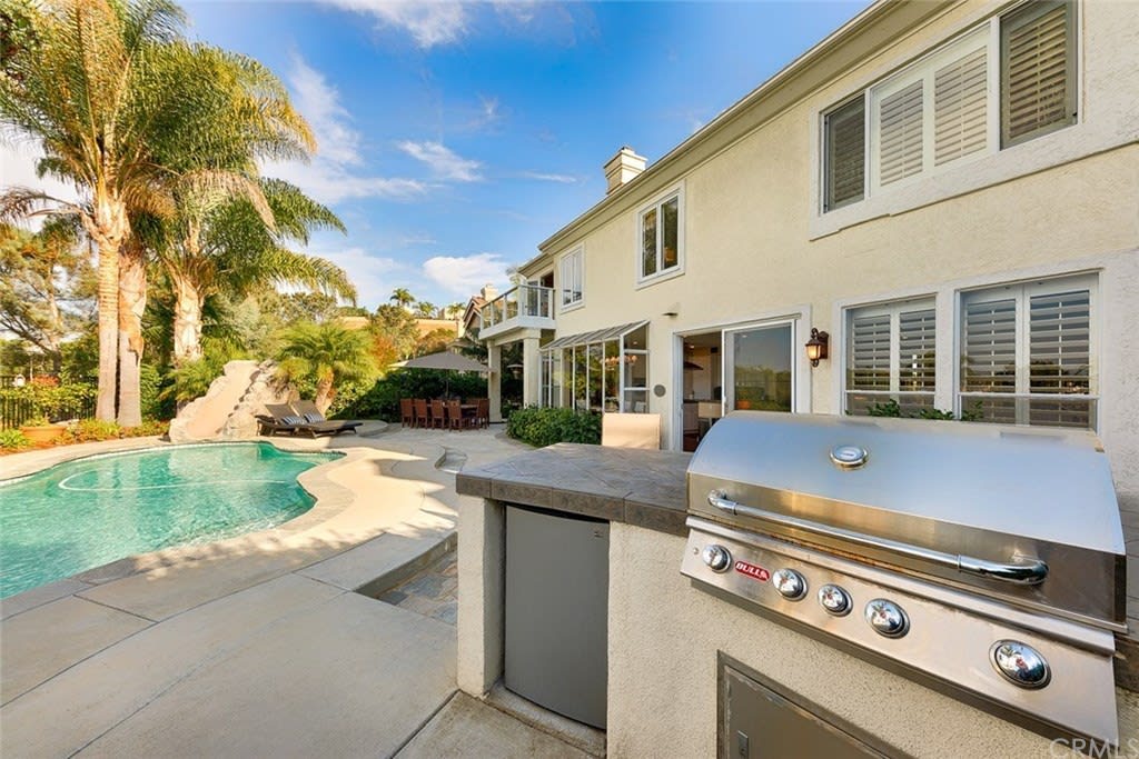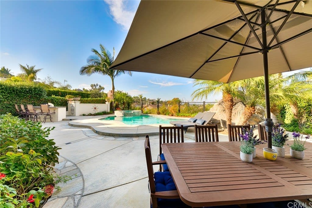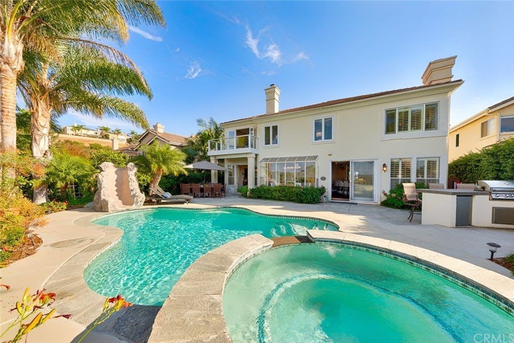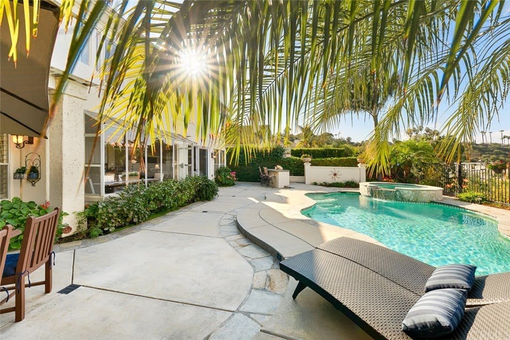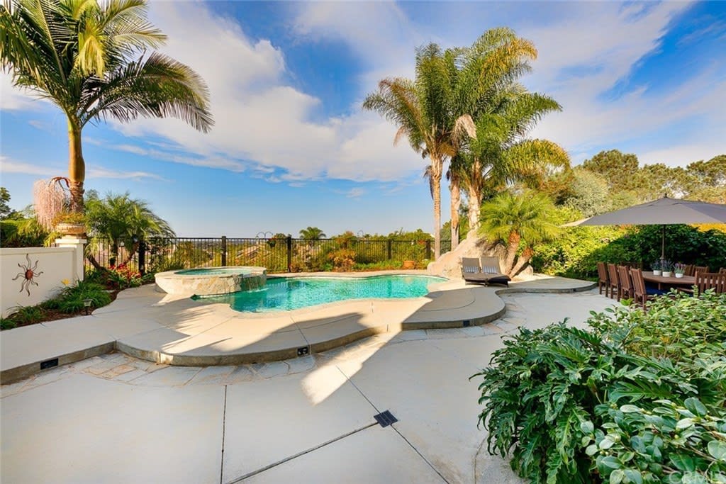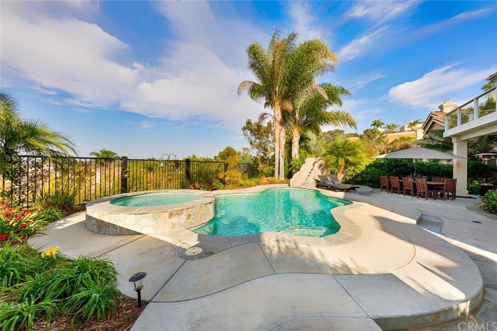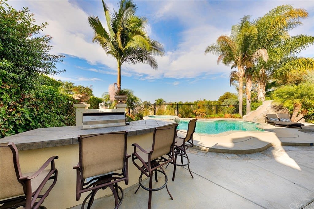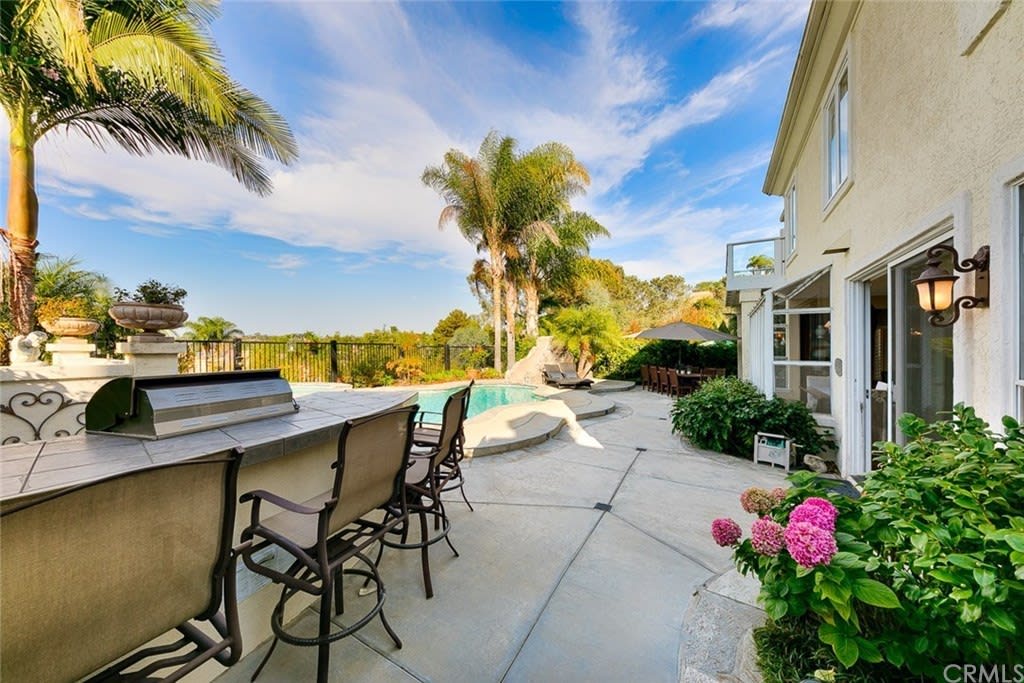 Delightful "Santa Fe Summit" home with northern views of the afternoon del mar balloons! This private lot enjoys a pool w/ slide, jacuzzi, waterfall, bbq, entertainment bar + three car garage w/ three separate doors all on a cul de sac street. The open first floor includes: double door entry + formal living room with high ceilings, twelve windows + majestic fireplace; formal dining room opens to the view w/ french doors and is lighted by a stunning prism rectangular chandelier; charming guest bathroom; family room boasts another fireplace w/ beautiful mantle + a full bar with seating for four; kitchen includes a breakfast table area with a full wall of windows + views, newer GE Monogram stainless double ovens, five burner gas stove + hood, trash compactor, custom refrigerator + dishwasher by Bosch; downstairs also has a bedroom suite w/ full private bath (newer) and a separate laundry room w/ large sink + cupboards. Up the graceful stairway is a master bedroom suite with wood floors, dual sided fireplace, custom built ins, separate sitting room with french doors, balcony + views, remodeled master bath features large separate shower + custom bathtub, dual sinks, vanity + two walk in closets; two bedrooms share a jack + jill bathroom and the fifth bedroom has its own private full bath. Award winning San Dieguito Union High School District! This fabulous home has not been on the market for over seventeen years and is looking for its new owners to love it like its present owners!
