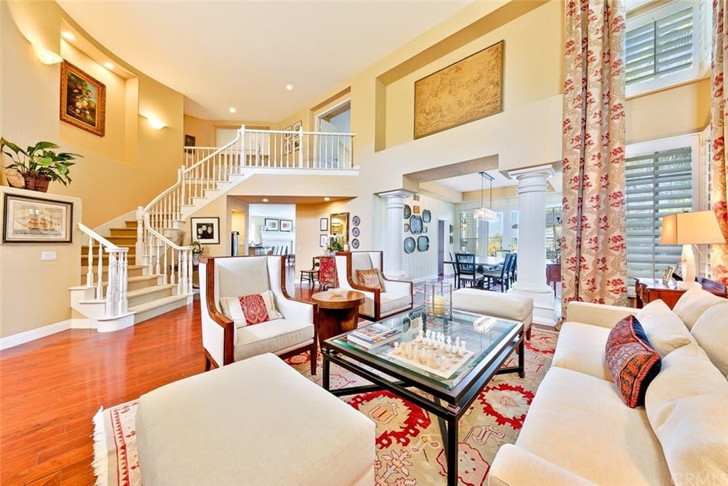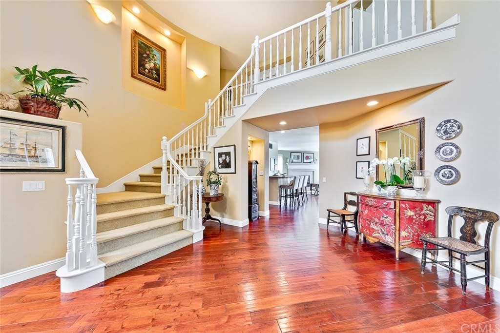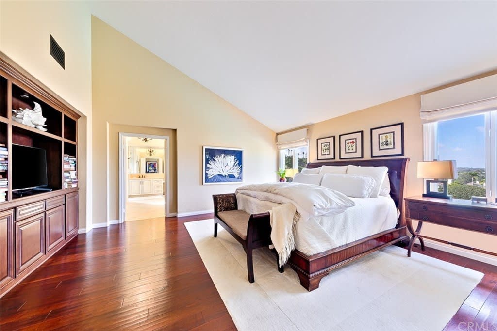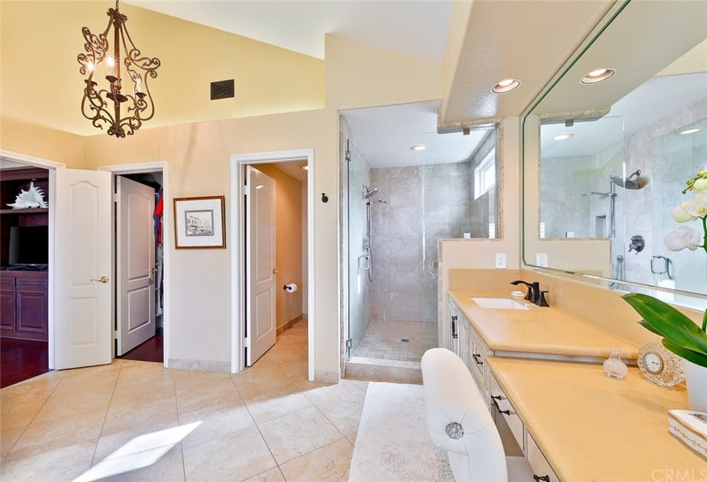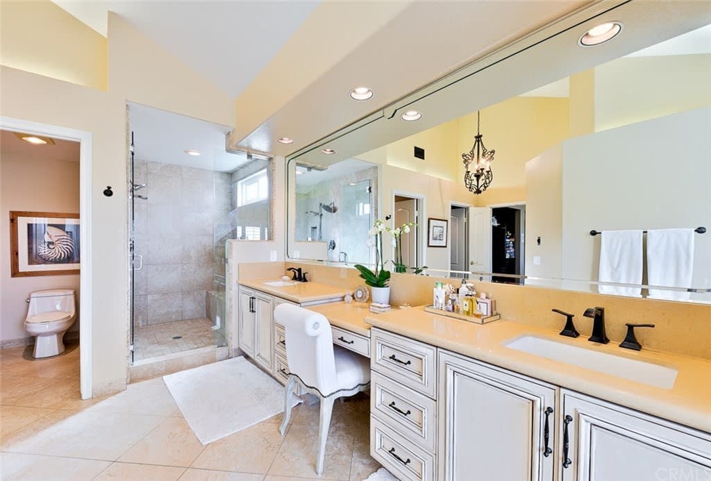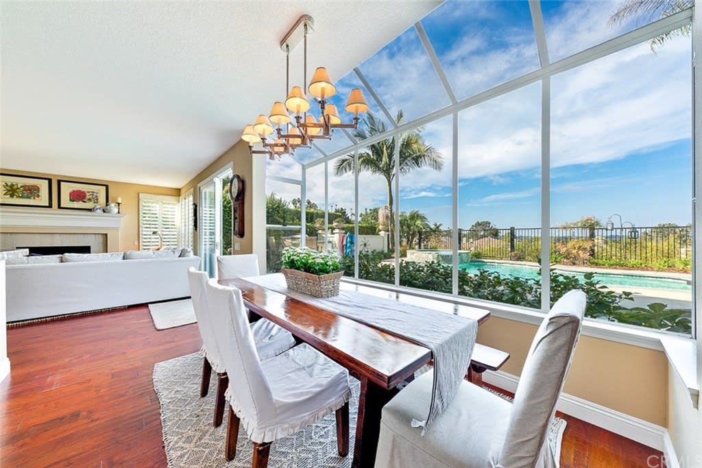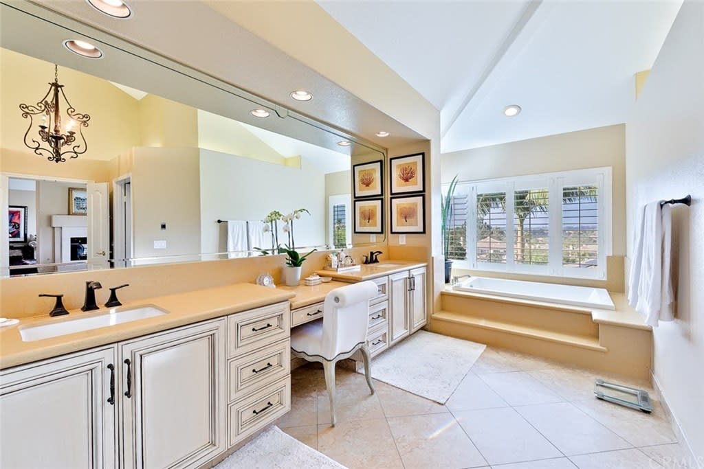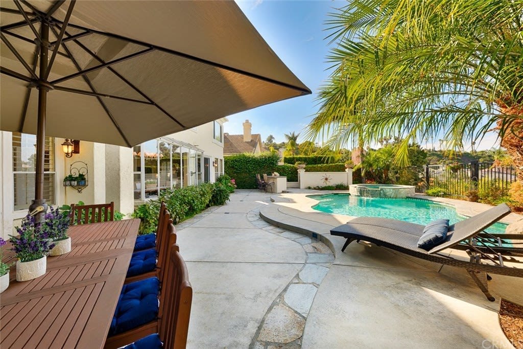 Delightful "Santa Fe Summit" home with northern views of the afternoon del mar balloons! This private lot enjoys a pool w/ slide, jacuzzi, waterfall, bbq, entertainment bar + three car garage w/ three separate doors all on a cul de sac street. The open first floor includes: double door entry + formal living room with high ceilings, twelve windows + majestic fireplace; formal dining room opens to the view w/ french doors and is lighted by a stunning prism rectangular chandelier; charming guest bathroom; family room boasts another fireplace w/ beautiful mantle + a full bar with seating for four; kitchen includes a breakfast table area with a full wall of windows + views, newer GE Monogram stainless double ovens, five burner gas stove + hood, trash compactor, custom refrigerator + dishwasher by Bosch; downstairs also has a bedroom suite w/ full private bath (newer) and a separate laundry room w/ large sink + cupboards. Up the graceful stairway is a master bedroom suite with wood floors, dual sided fireplace, custom built ins, separate sitting room with french doors, balcony + views, remodeled master bath features large separate shower + custom bathtub, dual sinks, vanity + two walk in closets; two bedrooms share a jack + jill bathroom and the fifth bedroom has its own private full bath. Award winning San Dieguito Union High School District! This fabulous home has not been on the market for over seventeen years and is looking for its new owners to love it like its present owners!