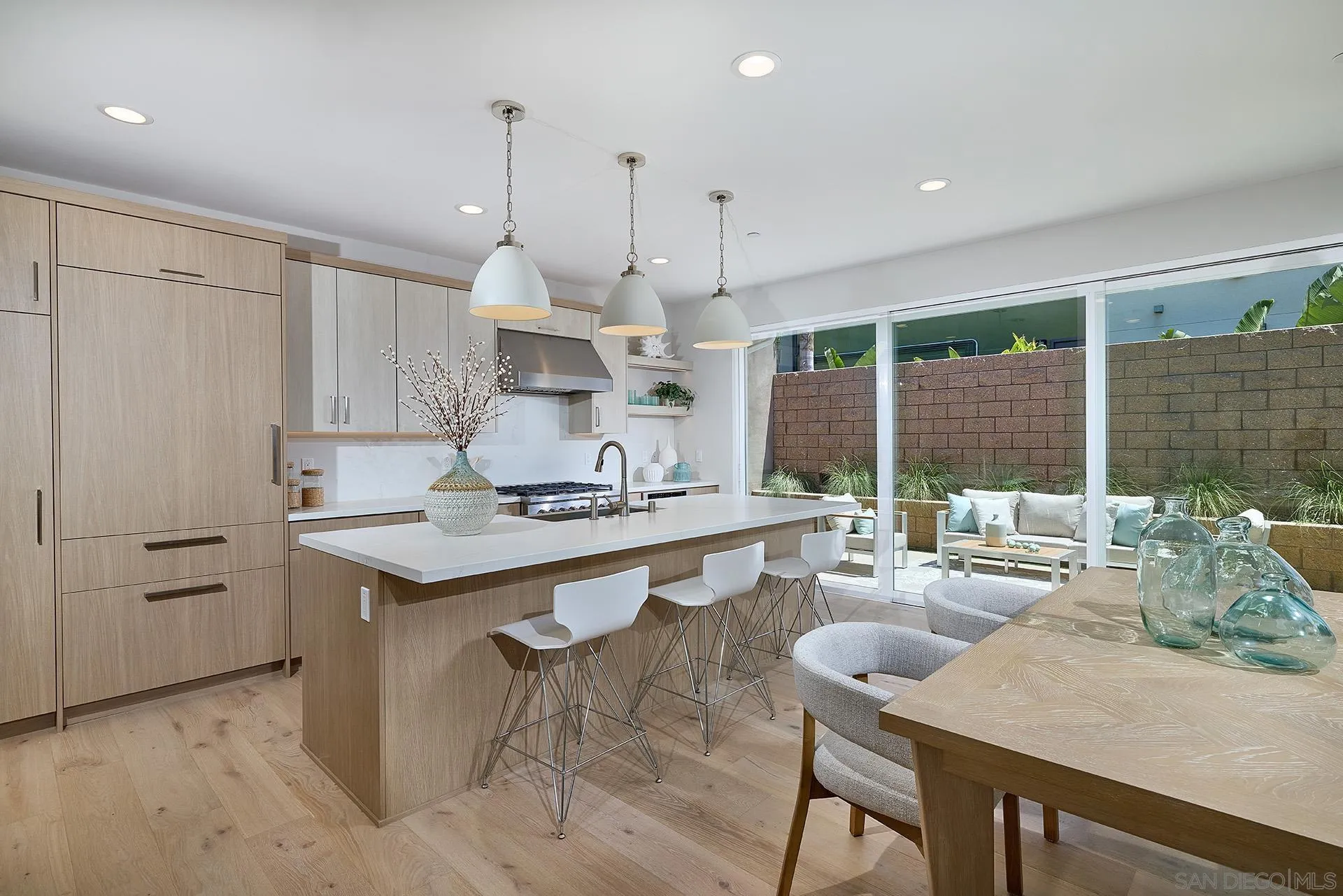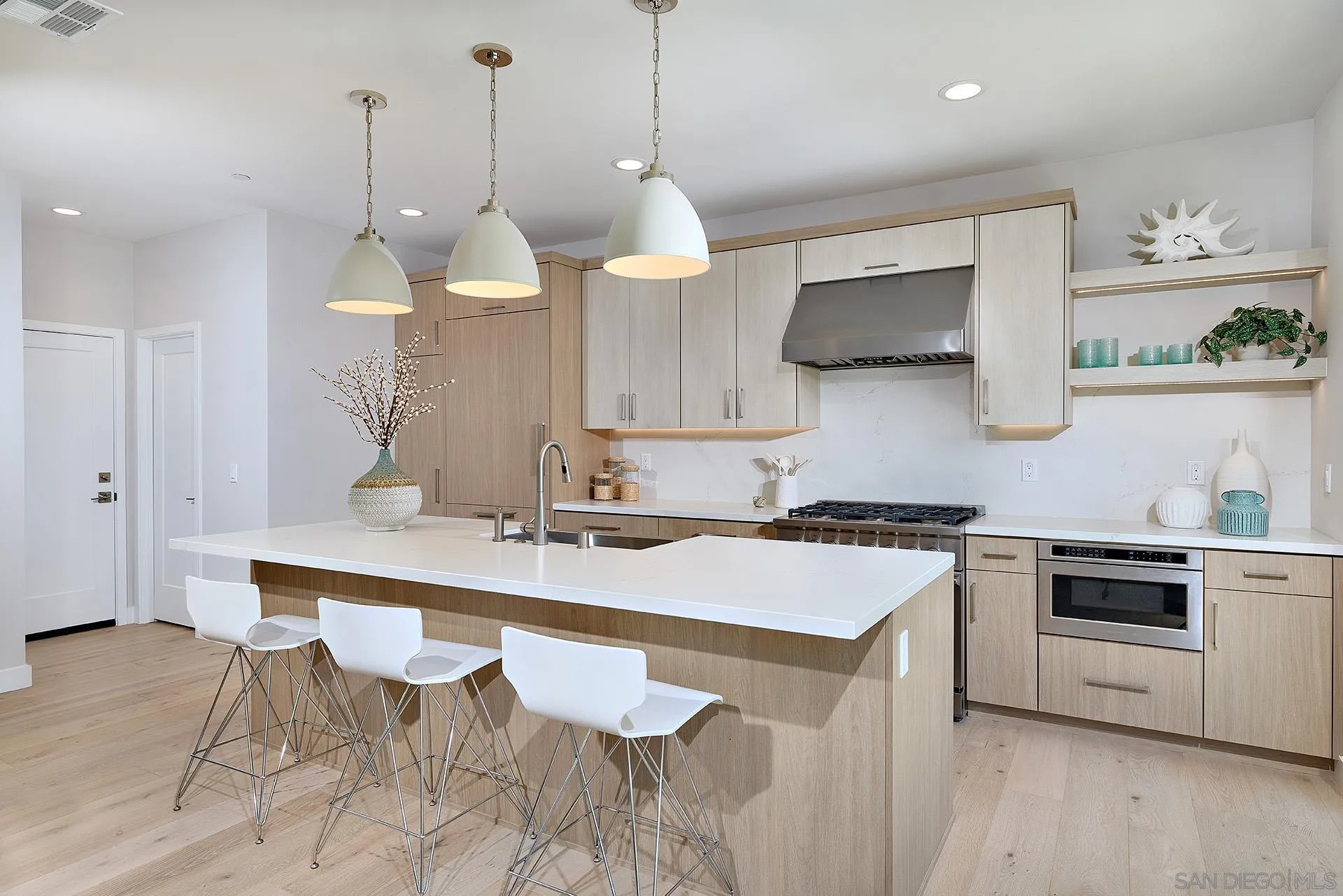 Brand New Construction! Stonesteps Cove is a Brand New enclave of 12 detached homes with a modern farmhouse aesthetic making a quaint new community west of the 5 Fwy in Coastal Encinitas and Leucadia! Introducing Residence 9 at 555 N Vulcan Ave. Enjoy upscale living in this Modern Coastal Farmhouse with 3 bed/2.5 bath plus upstairs Teen Room with 1851 sq ft. The Entry level greets you with an expansive Great Room with Chef's Kitchen, spacious island with seating, Dining area and Living Room. Enjoy extra large premium sliding doors bringing in abundant natural light and opening seamlessly to secluded back yard. Second level includes Primary Bedroom suite, Secondary Bedrooms, Full bath, Teen Room/ and Laundry room. Impeccably styled by Within Design with plank oak flooring, elegant Della Terra quartz countertops, GE Monogram Series Appliances, Custom wood cabinetry, Kohler/Moen hardware and Designer tile throughout. Includes attached two-car garage with direct access and home solar system. Stonesteps Cove is situated on Vulcan Avenue across from the iconic Pannikin Coffee House and just a short stroll to Stonesteps Beach through the new El Portal pedestrian undercrossing. This is the epitome of Encinitas Beach Living at your doorstep with walkability to beaches, restaurants, cafes, schools, Farmers Market and more! Move-in ready!