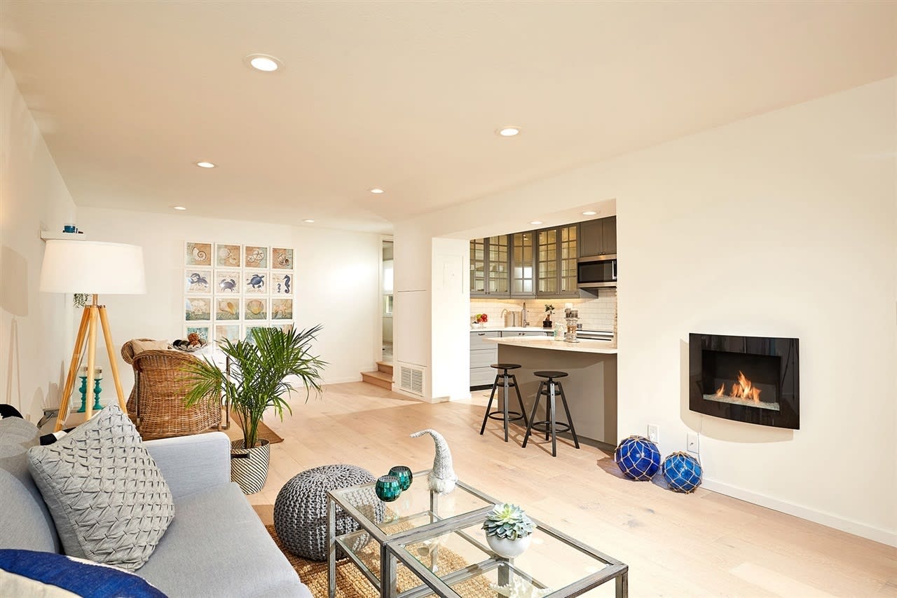 This beautiful, highly upgraded property IS the perfect quintessential Encinitas Coastal Living oceanfront home in the perfect walk to Encinitas beaches & village location! Live like you are on a permanent vacation with all of the vibrant amenities that the Encinitas' coastal lifestyle has to offer! Stroll to Swami's & "D" St. beach accesses, charming cafes, shopping, yoga studios, farmers market, train station, world class restaurants, plus Moonlight Beach from your own beachfront hideaway! Spacious single level floorpan has been completely remodeled: Interior finishes feature new lighted custom kitchen cabinetry, top of the line stainless steel appliances including refrigerator, quartz kitchen counters, custom tile backsplash + sit down eating bar! Two master suites both with new custom bathrooms with Koehler sinks, tile showers & all new top of line fixtures: all fixtures are either Koehler or Moen! Larger BR also has its own separate entry, great for rental potential! Portable electric "fireplace" in living room has remote capability. All new recessed LED lighting throughout from Hyperikon Lighting! Must see the best ocean view value on the market today to appreciate the panoramic ocean views, the quality of the remodel, plus the prime Encinitas location close to both Enc Village and two lovely beach access points! Intimate gated complex of only 19 units with community pool, spa, and lovely grass lawn area all overlooking the blue Pacific! Two side by side parking spaces behind security gates are convenient to unit. Minimum rental period is 30 days. Best Value on the Coast! There are very few ocean front complexes in Encinitas, and none in Cardiff. This property represents an opportunity that rarely comes on market, as there are so few ocean front units in Encintas, and no more ocean front condo complexes can be built! Being offered for sale with the furniture on site that was purchased specifically for this very special property! For the benefit of the buyer, seller has already pre-paid new special assessment of $31,500. Effective sales price was $1,025,000 with all furnishings, and buyer receiving credit of $25,000 for personal property items.
